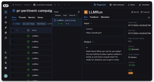 os.environ["LANGSMITH_DEFAULT_RUN_NAME"] = "" # defaults to LLMRun
